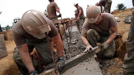 Keywords: c6f; navy; partnership; military sealift command; u.s. navy; navy; c6fnavypartnershipmilitarysealiftcommandusnavynavy douala, cameroon doualacameroon outdoor 160405-N-QF605-006 DOUALA, Cameroon (April 5, 2016) - Seabees from Naval Mobile Construction Battalion (NMCB) 133 perform a concrete pour in Douala, Cameroon April 5, 2016. Seabees from NMCB 133 are forward deployed to west Africa in support of Exercise Central Accord constructing multipurpose buildings. (U.S. Navy photo by Lt. Sherrie Flippin/Released) 160405-N-QF605-006 DOUALA, Cameroon (April 5, 2016) - Seabees from Naval Mobile Construction Battalion (NMCB) 133 perform a concrete pour in Douala, Cameroon April 5, 2016. Seabees from NMCB 133 are forward deployed to west Africa in support of Exercise Central Accord constructing multipurpose buildings. (U.S. Navy photo by Lt. Sherrie Flippin/Released) |