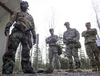 | Keywords: joint base elmendorf-richardson; alaska; paratroopers; airborne; jointbaseelmendorfrichardsonalaskaparatroopersairborne biological radiological and nuclear; training radiologicalandnucleartraining joint base elmendorf-richardson jointbaseelmendorfrichardson alaska usa joint base elmendorf-richardson; alaska; paratroopers; airborne; jber; us army; us army alaska; usarpac; us army pacific; cs; gas; chemical jointbaseelmendorfrichardsonalaskaparatroopersairbornejberusarmyusarmyalaskausarpacusarmypacificcsgaschemical people outdoor Spc. Brandon Brooks, assigned to B Troop, 1st Squadron (Airborne), 40th Cavalry Regiment, 4th Brigade Combat Team (Airborne), 25th Infantry Division, U.S. Army Alaska, conducts chemical, biological, radiological and nuclear defense training on Joint Base Elmendorf-Richardson, Alaska, Wednesday, April 13, 2016. The training culminated with masked Soldiers entering a sealed chamber filled with CS, then removing their protective gear to promote confidence in their equipment. CS, technically known as 0 chlorobenzalmalononitrile, is a solid white powder mixed with a dispersal agent and commonly referred to as tear gas. (U.S. Air Force photo/Justin Connaher). Spc. Brandon Brooks, assigned to B Troop, 1st Squadron (Airborne), 40th Cavalry Regiment, 4th Brigade Combat Team (Airborne), 25th Infantry Division, U.S. Army Alaska, conducts chemical, biological, radiological and nuclear defense training on Joint Base Elmendorf-Richardson, Alaska, Wednesday, April 13, 2016. The training culminated with masked Soldiers entering a sealed chamber filled with CS, then removing their protective gear to promote confidence in their equipment. CS, technically known as 0 chlorobenzalmalononitrile, is a solid white powder mixed with a dispersal agent and commonly referred to as tear gas. (U.S. Air Force photo/Justin Connaher). |