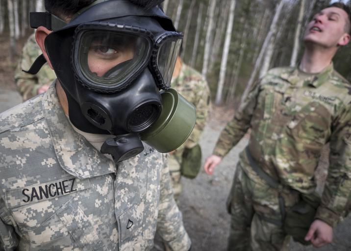 | Keywords: joint base elmendorf-richardson; alaska; paratroopers; airborne; jointbaseelmendorfrichardsonalaskaparatroopersairborne biological radiological and nuclear; training radiologicalandnucleartraining joint base elmendorf-richardson jointbaseelmendorfrichardson alaska usa joint base elmendorf-richardson; alaska; paratroopers; airborne; jber; us army; us army alaska; usarpac; us army pacific; cs; gas; chemical jointbaseelmendorfrichardsonalaskaparatroopersairbornejberusarmyusarmyalaskausarpacusarmypacificcsgaschemical outdoor Army Pfc. Harrison Sanchez, assigned to B Troop, 1st Squadron (Airborne), 40th Cavalry Regiment, 4th Brigade Combat Team (Airborne), 25th Infantry Division, U.S. Army Alaska, waits to enter a CS gas chamber during chemical, biological, radiological and nuclear defense training on Joint Base Elmendorf-Richardson, Alaska, Wednesday, April 13, 2016. The training culminated with masked Soldiers entering a sealed chamber filled with CS, then removing their protective gear to promote confidence in their equipment. CS, technically known as 0 chlorobenzalmalononitrile, is a solid white powder mixed with a dispersal agent and commonly referred to as tear gas. (U.S. Air Force photo/Justin Connaher) Army Pfc. Harrison Sanchez, assigned to B Troop, 1st Squadron (Airborne), 40th Cavalry Regiment, 4th Brigade Combat Team (Airborne), 25th Infantry Division, U.S. Army Alaska, waits to enter a CS gas chamber during chemical, biological, radiological and nuclear defense training on Joint Base Elmendorf-Richardson, Alaska, Wednesday, April 13, 2016. The training culminated with masked Soldiers entering a sealed chamber filled with CS, then removing their protective gear to promote confidence in their equipment. CS, technically known as 0 chlorobenzalmalononitrile, is a solid white powder mixed with a dispersal agent and commonly referred to as tear gas. (U.S. Air Force photo/Justin Connaher) |