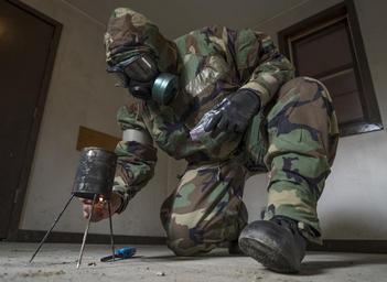 | Keywords: joint base elmendorf-richardson; alaska; paratroopers; airborne; jointbaseelmendorfrichardsonalaskaparatroopersairborne biological radiological and nuclear; training radiologicalandnucleartraining joint base elmendorf-richardson jointbaseelmendorfrichardson alaska usa joint base elmendorf-richardson; alaska; paratroopers; airborne; jber; us army; us army alaska; usarpac; us army pacific; cs; gas; chemical jointbaseelmendorfrichardsonalaskaparatroopersairbornejberusarmyusarmyalaskausarpacusarmypacificcsgaschemical Army Staff Sgt. Edward Washington, assigned to Headquarters and Headquarters Troop, 1st Squadron (Airborne), 40th Cavalry Regiment, 4th Brigade Combat Team (Airborne), 25th Infantry Division, U.S. Army Alaska, burns CS capsules during chemical, biological, radiological and nuclear defense training on Joint Base Elmendorf-Richardson, Alaska, Wednesday, April 13, 2016. The training culminated with masked Soldiers entering a sealed chamber filled with CS, then removing their protective gear to promote confidence in their equipment. CS, technically known as 0 chlorobenzalmalononitrile, is a solid white powder mixed with a dispersal agent and commonly referred to as tear gas. (U.S. Air Force photo/Justin Connaher). Army Staff Sgt. Edward Washington, assigned to Headquarters and Headquarters Troop, 1st Squadron (Airborne), 40th Cavalry Regiment, 4th Brigade Combat Team (Airborne), 25th Infantry Division, U.S. Army Alaska, burns CS capsules during chemical, biological, radiological and nuclear defense training on Joint Base Elmendorf-Richardson, Alaska, Wednesday, April 13, 2016. The training culminated with masked Soldiers entering a sealed chamber filled with CS, then removing their protective gear to promote confidence in their equipment. CS, technically known as 0 chlorobenzalmalononitrile, is a solid white powder mixed with a dispersal agent and commonly referred to as tear gas. (U.S. Air Force photo/Justin Connaher). |