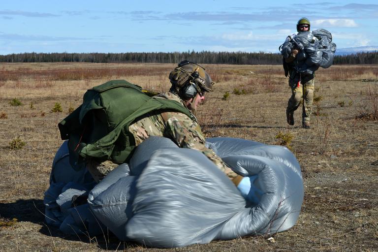 Keywords: joint base elmendorf-richardson jointbaseelmendorfrichardson alaska usa outdoor Airmen and Soldiers perform static and free-fall parachute jumps out of UH-60 Black Hawk helicopters as part of Grizzly Breakup, a training exercise, at Malemute drop zone, Joint Base Elmendorf-Richardson, Alaska, April 18, 2016. Grizzly Breakup is a week-long operation where service members from seven special operations units, spanning multiple installations, participate in parachute jumps out of Black Hawks and C-17 Globemaster IIIs. Airmen and Soldiers perform static and free-fall parachute jumps out of UH-60 Black Hawk helicopters as part of Grizzly Breakup, a training exercise, at Malemute drop zone, Joint Base Elmendorf-Richardson, Alaska, April 18, 2016. Grizzly Breakup is a week-long operation where service members from seven special operations units, spanning multiple installations, participate in parachute jumps out of Black Hawks and C-17 Globemaster IIIs.