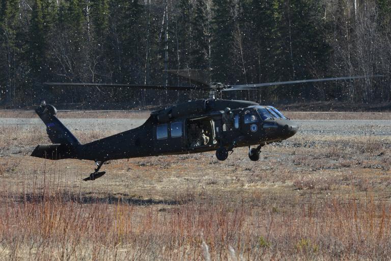 Keywords: joint base elmendorf-richardson jointbaseelmendorfrichardson alaska usa outdoor Airmen and Soldiers perform static and free-fall parachute jumps out of UH-60 Black Hawk helicopters as part of Grizzly Breakup, a training exercise, at Malemute drop zone, Joint Base Elmendorf-Richardson, Alaska, April 18, 2016. Grizzly Breakup is a week-long operation where service members from seven special operations units, spanning multiple installations, participate in parachute jumps out of Black Hawks and C-17 Globemaster IIIs. Airmen and Soldiers perform static and free-fall parachute jumps out of UH-60 Black Hawk helicopters as part of Grizzly Breakup, a training exercise, at Malemute drop zone, Joint Base Elmendorf-Richardson, Alaska, April 18, 2016. Grizzly Breakup is a week-long operation where service members from seven special operations units, spanning multiple installations, participate in parachute jumps out of Black Hawks and C-17 Globemaster IIIs.