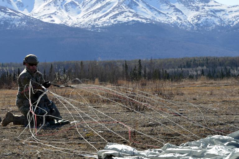 | Keywords: joint base elmendorf-richardson jointbaseelmendorfrichardson alaska usa outdoor mountain landscape hill Airmen and Soldiers perform static and free-fall parachute jumps out of UH-60 Black Hawk helicopters as part of Grizzly Breakup, a training exercise, at Malemute drop zone, Joint Base Elmendorf-Richardson, Alaska, April 18, 2016. Grizzly Breakup is a week-long operation where service members from seven special operations units, spanning multiple installations, participate in parachute jumps out of Black Hawks and C-17 Globemaster IIIs. Airmen and Soldiers perform static and free-fall parachute jumps out of UH-60 Black Hawk helicopters as part of Grizzly Breakup, a training exercise, at Malemute drop zone, Joint Base Elmendorf-Richardson, Alaska, April 18, 2016. Grizzly Breakup is a week-long operation where service members from seven special operations units, spanning multiple installations, participate in parachute jumps out of Black Hawks and C-17 Globemaster IIIs. |
