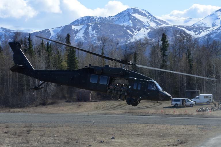 | Keywords: joint base elmendorf-richardson jointbaseelmendorfrichardson alaska usa outdoor landscape mountain Airmen and Soldiers perform static and free-fall parachute jumps out of UH-60 Black Hawk helicopters as part of Grizzly Breakup, a training exercise, at Malemute drop zone, Joint Base Elmendorf-Richardson, Alaska, April 18, 2016. Grizzly Breakup is a week-long operation where service members from seven special operations units, spanning multiple installations, participate in parachute jumps out of Black Hawks and C-17 Globemaster IIIs. Airmen and Soldiers perform static and free-fall parachute jumps out of UH-60 Black Hawk helicopters as part of Grizzly Breakup, a training exercise, at Malemute drop zone, Joint Base Elmendorf-Richardson, Alaska, April 18, 2016. Grizzly Breakup is a week-long operation where service members from seven special operations units, spanning multiple installations, participate in parachute jumps out of Black Hawks and C-17 Globemaster IIIs. |