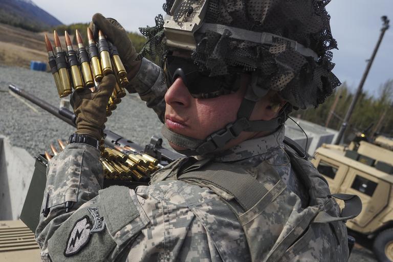 | Keywords: joint base elmendorf-richardson; alaska; paratroopers; airborne; jointbaseelmendorfrichardsonalaskaparatroopersairborne joint base elmendorf-richardson jointbaseelmendorfrichardson alaska usa joint base elmendorf-richardson; alaska; paratroopers; airborne; jber; us army; us army alaska; usarpac; us army pacific; m2; machinegun jointbaseelmendorfrichardsonalaskaparatroopersairbornejberusarmyusarmyalaskausarpacusarmypacificm2machinegun people outdoor Spc. Dillon Weitzel, assigned to Apache Troop, 1st Squadron (Airborne), 40th Cavalry Regiment, 4th Brigade Combat Team (Airborne), 25th Infantry Division, U.S. Army Alaska, waits for the order to fire during an M2 .50 Caliber, Heavy Barrel, Flexible, Machine Gun range on Joint Base Elmendorf-Richardson, Alaska, Tuesday, April 26, 2016. The M2 is a heavy machine gun that was designed in 1918, has been in service since 1933, is manufactured for use by the United States and its allies and is commonly referred to as the "Ma Deuce." The M2 has been in production longer than any other machine gun. (U.S. Air Force photo/Justin Connaher) Spc. Dillon Weitzel, assigned to Apache Troop, 1st Squadron (Airborne), 40th Cavalry Regiment, 4th Brigade Combat Team (Airborne), 25th Infantry Division, U.S. Army Alaska, waits for the order to fire during an M2 .50 Caliber, Heavy Barrel, Flexible, Machine Gun range on Joint Base Elmendorf-Richardson, Alaska, Tuesday, April 26, 2016. The M2 is a heavy machine gun that was designed in 1918, has been in service since 1933, is manufactured for use by the United States and its allies and is commonly referred to as the "Ma Deuce." The M2 has been in production longer than any other machine gun. (U.S. Air Force photo/Justin Connaher) |