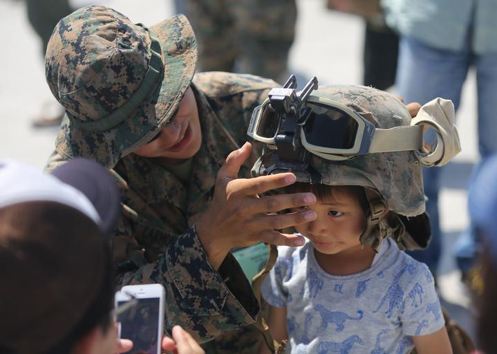 | Keywords: aviation bilateral training bilateraltraining fd16mcasiwakuni friendshipday2016 golden knights goldenknights interoperability jsdfair show jsdfairshow marine corps air station iwakuni friendship day 2016 air show marinecorpsairstationiwakunifriendshipday2016airshow mv-22 mv22 marine corps air station iwakuni marinecorpsairstationiwakuni yamaguchi japan jp A child tries on a Kevlar helmet during the Marine Corps Air Station Iwakuni Friendship Day 2016 Air Show, May 5, 2016. Air Station Iwakuni conducted a single-day air show and open house specifically designed to foster a positive relationship between the air station and its Japanese hosts. (U.S. Marine Corps photo by LCpl. Christian Robertson) A child tries on a Kevlar helmet during the Marine Corps Air Station Iwakuni Friendship Day 2016 Air Show, May 5, 2016. Air Station Iwakuni conducted a single-day air show and open house specifically designed to foster a positive relationship between the air station and its Japanese hosts. (U.S. Marine Corps photo by LCpl. Christian Robertson) |