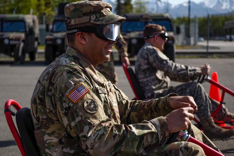 Keywords: soldiers; army; u.s. army; u.s. army alaska; usarpac; u.s. army soldiersarmyusarmyusarmyalaskausarpacusarmy soldiers; army; u.s. army; u.s. army alaska; usarpac; u.s. army pacific; 17th cssb; 17th combat sustainment support battalion; safety soldiersarmyusarmyusarmyalaskausarpacusarmypacific17thcssb17thcombatsustainmentsupportbattalionsafety outdoor vehicle riding motorcycle bike sport animal Spc. Elvin Vazquez, assigned to the 17th Combat Sustainment Support Battalion, U.S. Army Alaska, prepares to negotiate a driving obstacle course while wearing goggles that simulate visual impairment under the influence of alcohol during a unit Safety Stand-Down Day, Friday, May 13, 2016. During the event Soldiers were trained at different stations in fire prevention, personal weapons safety, outdoor recreation safety, family and personal health, and Driving Under the Influence prevention. (U.S. Air Force photo/Justin Connaher) Spc. Elvin Vazquez, assigned to the 17th Combat Sustainment Support Battalion, U.S. Army Alaska, prepares to negotiate a driving obstacle course while wearing goggles that simulate visual impairment under the influence of alcohol during a unit Safety Stand-Down Day, Friday, May 13, 2016. During the event Soldiers were trained at different stations in fire prevention, personal weapons safety, outdoor recreation safety, family and personal health, and Driving Under the Influence prevention. (U.S. Air Force photo/Justin Connaher) |