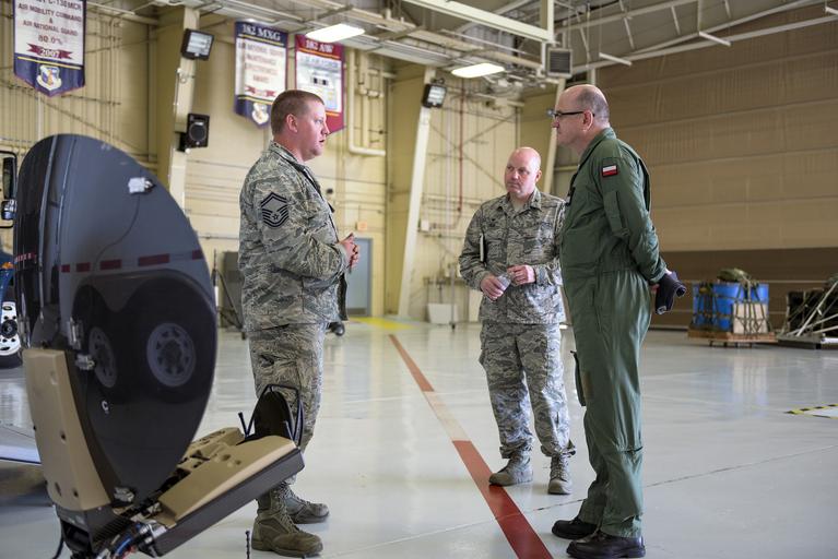 Keywords: air force airforce usaf air national guard airnationalguard ang national guard nationalguard ngb 182 airlift wing airliftwing peoria illinois always on mission alwaysonmission airmen polish poland spp state partnership program statepartnershipprogram domops domestic operations domesticoperations multinational ct120 satellite il usa us U.S. Air Force Master Sgt. Lucas M. Creasy, left, a systems superintendent with the 264th Combat Communications Squadron, Illinois Air National Guard, explains the functions of the SWE-DISH CCT120 communications satellite to Polish air force Brig. Gen. Sławomir Żakowski, right, the deputy commander of the Air Operations Center - Air Component Command, in Peoria, Ill., May 13, 2016. Illinois and the Republic of Poland have been colleagues in the National Guard State Partnership Program since 1993. (U.S. Air National Guard photo by Staff Sgt. Lealan Buehrer) U.S. Air Force Master Sgt. Lucas M. Creasy, left, a systems superintendent with the 264th Combat Communications Squadron, Illinois Air National Guard, explains the functions of the SWE-DISH CCT120 communications satellite to Polish air force Brig. Gen. Sławomir Żakowski, right, the deputy commander of the Air Operations Center - Air Component Command, in Peoria, Ill., May 13, 2016. Illinois and the Republic of Poland have been colleagues in the National Guard State Partnership Program since 1993. (U.S. Air National Guard photo by Staff Sgt. Lealan Buehrer) |