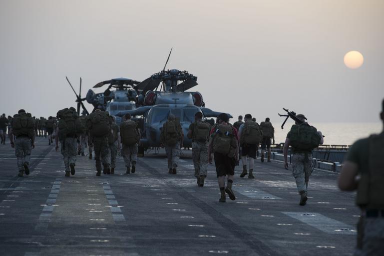 | Keywords: 160528-N-KR961-036 160528-N-KR961-036.jpg en 160528-N-KR961-036 GULF OF ADEN May 28 2016 Sailors and Marines aboard amphibious assault ship USS Boxer LHD 4 participate in a Memorial Day sunrise ruck march on the flight deck Boxer is the flagship for the Boxer Amphibious Ready Group and with the embarked 13th Marine Expeditionary Unit is deployed in support of maritime security operations and theater security cooperation efforts in the U S 5th Fleet area of operations U S Navy photo by Mass Communication Specialist 2nd Class Debra Daco/Released Unit Navy Media Content Services DVIDS Tags Ruck March; USS Boxer LHD 4 ; Amphibious Ready Group; U S Navy; 13th MEU; 13th Marine Expeditionary Unit; NMCS; CPR-1; DVIDS Bulk Import; BOXARG13MEU16; Memorial Observance 2016-05-28 Petty Officer 2nd Class Debra Daco https //www dvidshub net/image/2627548/160528-n-kr961-036 160528-N-KR961-036 2016-06-01 00 29 GULF OF ADEN PD-USGov-Military-Navy 13th Marine Expeditionary Unit USS Boxer LHD-4 Images from DoD uploaded by Fæ |