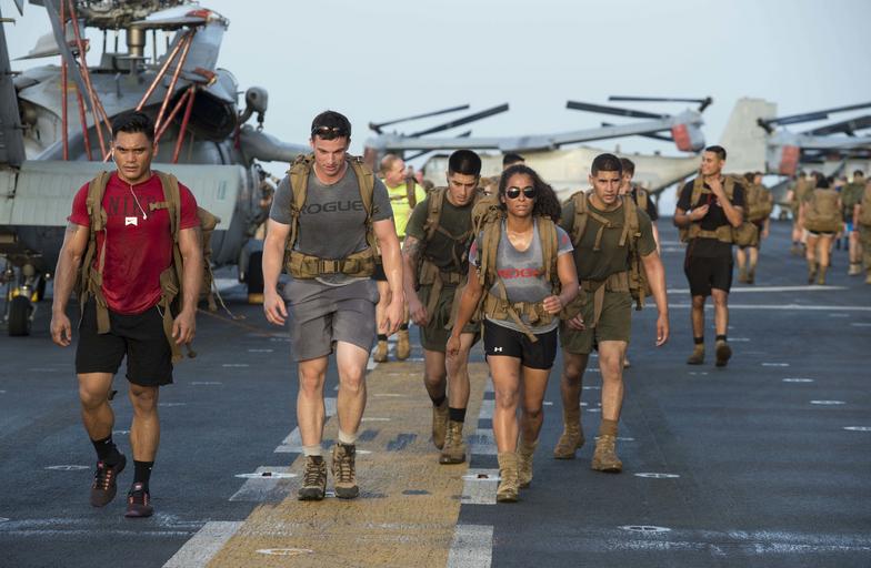 | Keywords: 160528-N-KR961-134 160528-N-KR961-134.jpg en 160528-N-KR961-134 GULF OF ADEN May 28 2016 Sailors and Marines aboard amphibious assault ship USS Boxer LHD 4 participate in a Memorial Day sunrise ruck march on the flight deck Boxer is the flagship for the Boxer Amphibious Ready Group and with the embarked 13th Marine Expeditionary Unit is deployed in support of maritime security operations and theater security cooperation efforts in the U S 5th Fleet area of operations U S Navy photo by Mass Communication Specialist 2nd Class Debra Daco/Released Unit Navy Media Content Services DVIDS Tags Ruck March; USS Boxer LHD 4 ; Amphibious Ready Group; U S Navy; 13th MEU; 13th Marine Expeditionary Unit; NMCS; CPR-1; DVIDS Bulk Import; BOXARG13MEU16; Memorial Observance 2016-05-28 Petty Officer 2nd Class Debra Daco https //www dvidshub net/image/2627587/160528-n-kr961-134 160528-N-KR961-134 2016-06-01 00 29 GULF OF ADEN PD-USGov-Military-Navy 13th Marine Expeditionary Unit USS Boxer LHD-4 Images from DoD uploaded by Fæ |