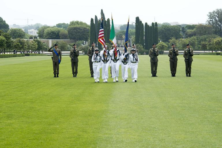 Keywords: u.s. navy usnavy navy mc navymc nsa naples nsanaples npase-east npaseeast navy public affairs navypublicaffairs sailors marines europe italy nato nettuno outdoor 160529-N-TC720-055 NETTUNO, Italy (May 29, 2016) The U.S. 6th fleet color guard parade the colors during the Memorial Day ceremony at Sicily-Rome American Cemetery. During the ceremony, veterans, service members, students and families gathered to honor and pay tribute to those who gave their lives during the liberation of Italy in 1943. (U.S. Navy photo by Mass Communication Specialist 2nd Class Mat Murch/Released) 160529-N-TC720-055 NETTUNO, Italy (May 29, 2016) The U.S. 6th fleet color guard parade the colors during the Memorial Day ceremony at Sicily-Rome American Cemetery. During the ceremony, veterans, service members, students and families gathered to honor and pay tribute to those who gave their lives during the liberation of Italy in 1943. (U.S. Navy photo by Mass Communication Specialist 2nd Class Mat Murch/Released) |