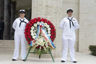 Keywords: 160529-N-TC720-501 160529-N-TC720-501.jpg en 160529-N-TC720-501 NETTUNO Italy May 29 2016 Gunner's Mate 2nd Class Samantha Canchola from Chicago left and Gunner's Mate 1st Class Kali Morris from Doylestown Ohio stationed aboard USS Donald Cook DDG 75 stand next to a wreath delivered on behalf of the United States during the Memorial Day ceremony at Sicily-Rome American Cemetery During the ceremony veterans service members students and families gathered to honor and pay tribute to those who gave their lives during the liberation of Italy in 1943 U S Navy photo by Mass Communication Specialist 2nd Class Mat Murch/Released Unit Navy Media Content Services DVIDS Tags NATO; Italy; NSA Naples; Europe; NPASE-East; Sailors; Marines; U S Navy; NMCS; DVIDS Bulk Import; Navy Public Affairs; Navy MC 2016-05-29 Petty Officer 2nd Class Matthew Murch https //www dvidshub net/image/2627071/160529-n-tc720-501 160529-N-TC720-501 2016-06-01 00 18 NETTUNO IT PD-USGov-Military-Navy USS Donald Cook DDG-75 Images from DoD uploaded by Fæ |