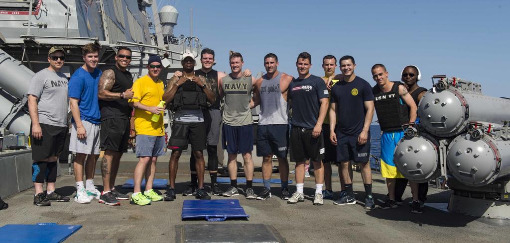 MAKE A MEME View Large Image 160530-N-GP524-171 160530-N-GP524-171.jpg en 160530-N-GP524-171 MEDITERRANEAN SEA May 30 2016 Sailors assigned to USS Stout DDG 55 completed the Memorial Day MURPH Challenge honoring the fallen Lt Michael Murphy through physical fitness ...