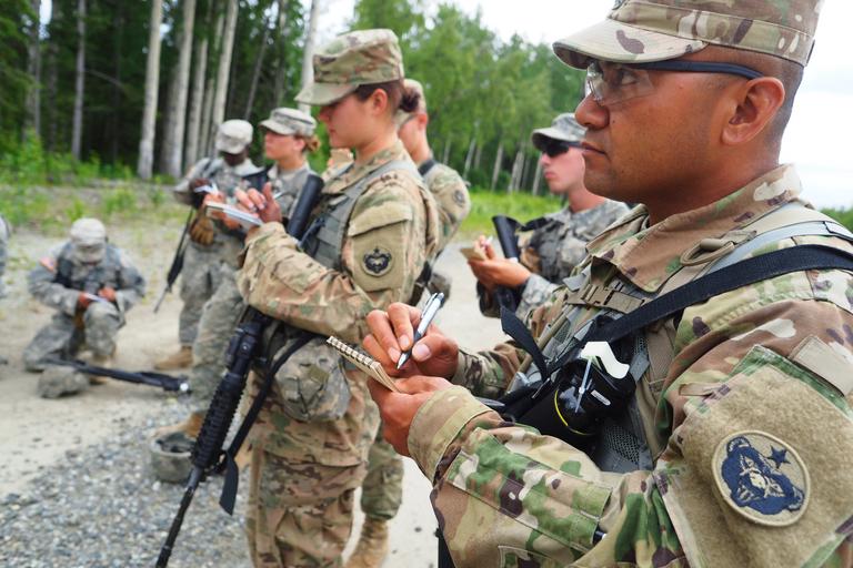 Keywords: soldiers; army; u.s. army; u.s. army alaska; usarpac; u.s. army soldiersarmyusarmyusarmyalaskausarpacusarmy joint base elmendorf-richardson jointbaseelmendorfrichardson alaska usa soldiers; army; u.s. army; u.s. army alaska; usarpac; u.s. army pacific; ready warrior; competition; small unit; leadership; testing; training soldiersarmyusarmyusarmyalaskausarpacusarmypacificreadywarriorcompetitionsmallunitleadershiptestingtraining people outdoor Army Sgt. Norbert Iriarte, a native of Mangilao, Guam, assigned to the 17th Combat Sustainment Support Battalion, U.S. Army Alaska, takes notes during a safety briefing before a Situation Exercise Training lane during the Ready Warrior Competition at Camp Madbull on Joint Base Elmendorf-Richardson, Alaska, Thursday, June 23, 2016. The three-day competition tested teams of Soldiers in physical fitness, small arms proficiency, land navigation, and small-unit tactics as well as other Soldier skills. (U.S. Air Force photo/Justin Connaher) Army Sgt. Norbert Iriarte, a native of Mangilao, Guam, assigned to the 17th Combat Sustainment Support Battalion, U.S. Army Alaska, takes notes during a safety briefing before a Situation Exercise Training lane during the Ready Warrior Competition at Camp Madbull on Joint Base Elmendorf-Richardson, Alaska, Thursday, June 23, 2016. The three-day competition tested teams of Soldiers in physical fitness, small arms proficiency, land navigation, and small-unit tactics as well as other Soldier skills. (U.S. Air Force photo/Justin Connaher) |