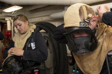 Keywords: uss porter (ddg 78) ussporterddg78 damage control damagecontrol fire fighter firefighter fire fighting gear firefightinggear scba flash gear flashgear u.s. navy usnavy ddg 78 ddg78 uss porter ussporter porter mc3 robert price mc3robertprice 160624-N-FQ994-013 MEDITERRANEAN SEA (June 24, 2016) Damage Controlman 3rd Class Zach White and Damage Controlman Fireman Julianna Gildea, from South Haven, Michigan, don firefighting equipment aboard USS Porter (DDG 78) during a damage control training exercise June 24, 2016. Porter, an Arleigh Burke-class guided-missile destroyer, forward-deployed to Rota, Spain, is conducting a routine patrol in the U.S. 6th Fleet area of operations in support of U.S. national security interests in Europe. (U.S. Navy Photo by Mass Communication Specialist 3rd Class Robert S. Price/Released) 160624-N-FQ994-013 MEDITERRANEAN SEA (June 24, 2016) Damage Controlman 3rd Class Zach White and Damage Controlman Fireman Julianna Gildea, from South Haven, Michigan, don firefighting equipment aboard USS Porter (DDG 78) during a damage control training exercise June 24, 2016. Porter, an Arleigh Burke-class guided-missile destroyer, forward-deployed to Rota, Spain, is conducting a routine patrol in the U.S. 6th Fleet area of operations in support of U.S. national security interests in Europe. (U.S. Navy Photo by Mass Communication Specialist 3rd Class Robert S. Price/Released) |