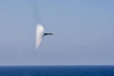 MEDITERRANEAN SEA (June 26, 2016) An F/A-18C Hornet, assigned to the “Rampagers” of Strike Fighter Squadron (VFA) 83, performs a supersonic fly-by off the port side of aircraft carrier USS Harry S. Truman (CVN 75). Harry S. Truman Carrier Strike Group is deployed in support of maritime security operations and theater security cooperation efforts in the U.S. 6th Fleet area of operations. (U.S. Navy photo by Mass Communication Specialist 3rd Class Bobby J Siens/Released) usa mediterraneansea ussharrystrumancvn75 fa18fsuperhornet strikefightersquadronvfa103 FA-18C Hornet breaks the sound barrier.jpg An F/A-18C Hornet assigned to the Rampagers of Strike Fighter Squadron VFA 83 performs a supersonic fly-by off the port side of aircraft carrier USS Harry S Truman CVN 75 Harry S Truman Carrier Strike Group is deployed in support of maritime security operations and theater security cooperation efforts in the U S 6th Fleet area of operations https //www flickr com/photos/127906254 N06/28002347551/ 160626-N-DZ642-128 2016-06-26 16 12 U S Navy photo by Bobby J Siens PD-USGov-Military-Navy Taketa 2016-07-13 F/A-18C Hornet with condensation clouds from shockwaves Aboard USS Harry S Truman CVN-75 Strike Fighter Squadron 83 United States Navy |