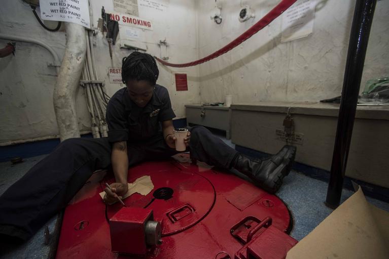 | Keywords: select 160703-N-KJ380-005 MEDITERRANEAN SEA (July 3, 2016)- Aviation Ordnanceman Airman Rholanda Tucker paints a scuttle on the forward mess decks of the aircraft carrier USS Dwight D. Eisenhower (CVN 69) (Ike). Ike is deployed in support of Operation Inherent Resolve, maritime security operations and theater security operation efforts in the U.S. 6th Fleet area of operations. (U.S. Navy photo by Mass Communication Specialist Seaman Apprentice Neo Greene III/Released) 160703-N-KJ380-005 MEDITERRANEAN SEA (July 3, 2016)- Aviation Ordnanceman Airman Rholanda Tucker paints a scuttle on the forward mess decks of the aircraft carrier USS Dwight D. Eisenhower (CVN 69) (Ike). Ike is deployed in support of Operation Inherent Resolve, maritime security operations and theater security operation efforts in the U.S. 6th Fleet area of operations. (U.S. Navy photo by Mass Communication Specialist Seaman Apprentice Neo Greene III/Released) |