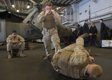 Keywords: lhd1 uss wasp usswasp wasp arg wasparg mediterranean sea mediterraneansea 160728-N-LG762-082 MEDITERRANEAN SEA (July 28, 2016) Marines participate in marine martial arts program training session aboard the amphibious assault ship USS Wasp (LHD 1) July 28, 2016. Wasp is deployed with the Wasp Amphibious Ready Group to support maritime security operations and theater security cooperation efforts in the U.S. 6th Fleet area of operations. (U.S. Navy photo by Mass Communication Specialist 3rd Class Zhiwei Tan/Released) 160728-N-LG762-082 MEDITERRANEAN SEA (July 28, 2016) Marines participate in marine martial arts program training session aboard the amphibious assault ship USS Wasp (LHD 1) July 28, 2016. Wasp is deployed with the Wasp Amphibious Ready Group to support maritime security operations and theater security cooperation efforts in the U.S. 6th Fleet area of operations. (U.S. Navy photo by Mass Communication Specialist 3rd Class Zhiwei Tan/Released) |