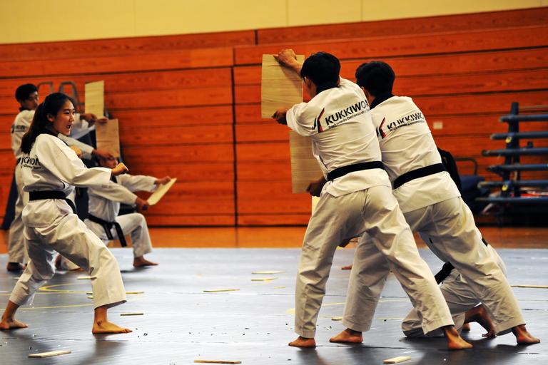 Keywords: taekwondo u.s. army usarmy u.s. marine corps usmarinecorps u.s. navy usnavy u.s. air force usairforce presidio of monterey presidioofmonterey korea people athlete sport The Kukkiwon Taekwondo Demonstration Team from Korea performed a traditional martial arts demonstration at the Presidio of Monterey, California, Price Fitness Center Aug. 3. The Defense Language Institute Foreign Language Center Korean School hosted the event. Following the demonstration, the team answered questions in Korean for the benefit of the students. Kukkiwon, known as the World Taekwondo Headquarters, is the center of taekwondo culture in Korea with teams touring about 120 countries as ambassadors of the traditional martial art for the past 40 years. (U.S. Army photo by Patrick Bray/Released) The Kukkiwon Taekwondo Demonstration Team from Korea performed a traditional martial arts demonstration at the Presidio of Monterey, California, Price Fitness Center Aug. 3. The Defense Language Institute Foreign Language Center Korean School hosted the event. Following the demonstration, the team answered questions in Korean for the benefit of the students. Kukkiwon, known as the World Taekwondo Headquarters, is the center of taekwondo culture in Korea with teams touring about 120 countries as ambassadors of the traditional martial art for the past 40 years. (U.S. Army photo by Patrick Bray/Released) |