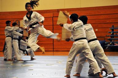 | Keywords: taekwondo u.s. army usarmy u.s. marine corps usmarinecorps u.s. navy usnavy u.s. air force usairforce presidio of monterey presidioofmonterey korea sport The Kukkiwon Taekwondo Demonstration Team from Korea performed a traditional martial arts demonstration at the Presidio of Monterey, California, Price Fitness Center Aug. 3. The Defense Language Institute Foreign Language Center Korean School hosted the event. Following the demonstration, the team answered questions in Korean for the benefit of the students. Kukkiwon, known as the World Taekwondo Headquarters, is the center of taekwondo culture in Korea with teams touring about 120 countries as ambassadors of the traditional martial art for the past 40 years. (U.S. Army photo by Patrick Bray/Released) The Kukkiwon Taekwondo Demonstration Team from Korea performed a traditional martial arts demonstration at the Presidio of Monterey, California, Price Fitness Center Aug. 3. The Defense Language Institute Foreign Language Center Korean School hosted the event. Following the demonstration, the team answered questions in Korean for the benefit of the students. Kukkiwon, known as the World Taekwondo Headquarters, is the center of taekwondo culture in Korea with teams touring about 120 countries as ambassadors of the traditional martial art for the past 40 years. (U.S. Army photo by Patrick Bray/Released) |