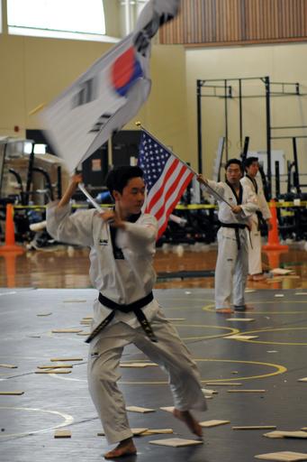 Keywords: taekwondo u.s. army usarmy u.s. marine corps usmarinecorps u.s. navy usnavy u.s. air force usairforce presidio of monterey presidioofmonterey korea The Kukkiwon Taekwondo Demonstration Team from Korea performed a traditional martial arts demonstration at the Presidio of Monterey, California, Price Fitness Center Aug. 3. The Defense Language Institute Foreign Language Center Korean School hosted the event. Following the demonstration, the team answered questions in Korean for the benefit of the students. Kukkiwon, known as the World Taekwondo Headquarters, is the center of taekwondo culture in Korea with teams touring about 120 countries as ambassadors of the traditional martial art for the past 40 years. (U.S. Army photo by Patrick Bray/Released) The Kukkiwon Taekwondo Demonstration Team from Korea performed a traditional martial arts demonstration at the Presidio of Monterey, California, Price Fitness Center Aug. 3. The Defense Language Institute Foreign Language Center Korean School hosted the event. Following the demonstration, the team answered questions in Korean for the benefit of the students. Kukkiwon, known as the World Taekwondo Headquarters, is the center of taekwondo culture in Korea with teams touring about 120 countries as ambassadors of the traditional martial art for the past 40 years. (U.S. Army photo by Patrick Bray/Released)