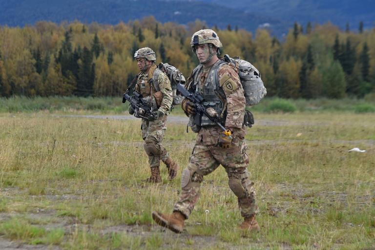 | Keywords: outdoor sport Paratroopers assigned to the 1st Battalion, 501st Parachute Infantry Regiment, 4th Infantry Brigade Combat Team (Airborne), 25th Infantry Division, U.S. Army Alaska, participate in a joint forcible entry exercise at Malemute Drop Zone on Joint Base Elmendorf-Richardson, Alaska, Aug. 23, 2016, as part of Exercise Spartan Agoge. Spartan Agoge is a brigade-level field training exercise that began Aug. 15, and focuses on an array of combat-related tasks from squad live-fire exercises to helicopter air insertion and airborne assault training. (U.S. Air Force photo by Airman 1st Class Valerie Monroy) Paratroopers assigned to the 1st Battalion, 501st Parachute Infantry Regiment, 4th Infantry Brigade Combat Team (Airborne), 25th Infantry Division, U.S. Army Alaska, participate in a joint forcible entry exercise at Malemute Drop Zone on Joint Base Elmendorf-Richardson, Alaska, Aug. 23, 2016, as part of Exercise Spartan Agoge. Spartan Agoge is a brigade-level field training exercise that began Aug. 15, and focuses on an array of combat-related tasks from squad live-fire exercises to helicopter air insertion and airborne assault training. (U.S. Air Force photo by Airman 1st Class Valerie Monroy) |