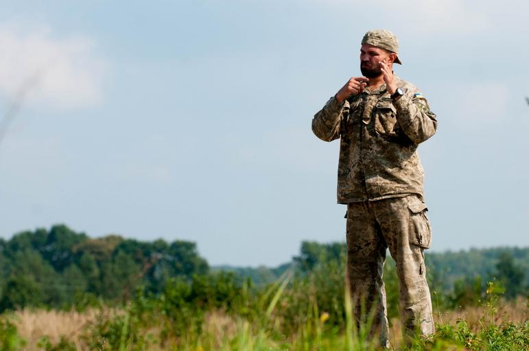 MAKE A MEME View Large Image Ukrainian Soldier uses hand signals during a ground guide exercise of field litter ambulance familiarization on the driving range at Yavoriv Training Area, Ukraine on Sep. 9, 2016. A team of medics and a mechanic from 557th Medical Company ...