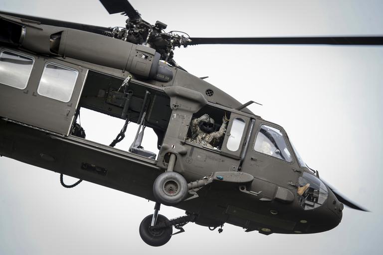 | Keywords: usa usaf u.s. air force usairforce united states air force unitedstatesairforce air force airforce army joint training jointtraining exercise rail yard exerciserailyard tacp tactical air control party tacticalaircontrolparty jtac joint terminal air controller jointterminalaircontroller special forces specialforces soldier airman warren grove gunnery range warrengrovegunneryrange n.j. nj public domain publicdomain vehicle aircraft rotor blade outdoor A New Jersey Army National Guard Black Hawk helicopter from the 1-150 Assault Helicopter Battalion departs after dropping off Airmen from the 227th Air Support Operations Squadron for an air assault mission during Exercise Rail Yard, on Warren Grove Gunnery Range, N.J., Sept 21, 2016. Exercise Rail Yard is a joint training mission with active duty Air Force and Air National Guard TACP squadrons, as well as soldiers from the 7th, 10th, and 19th Special Forces Groups. (U.S. Air National Guard photo by Tech. Sgt. Matt Hecht/Released) A New Jersey Army National Guard Black Hawk helicopter from the 1-150 Assault Helicopter Battalion departs after dropping off Airmen from the 227th Air Support Operations Squadron for an air assault mission during Exercise Rail Yard, on Warren Grove Gunnery Range, N.J., Sept 21, 2016. Exercise Rail Yard is a joint training mission with active duty Air Force and Air National Guard TACP squadrons, as well as soldiers from the 7th, 10th, and 19th Special Forces Groups. (U.S. Air National Guard photo by Tech. Sgt. Matt Hecht/Released) |
