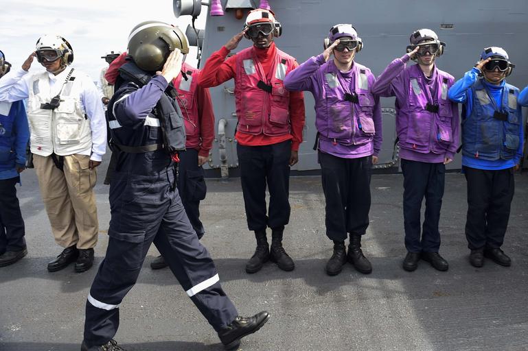 | Keywords: navy uss ross (ddg 71) ussrossddg71 ddg 71 ddg71 u.s. 6th fleet us6thfleet c6f ctf 65 ctf65 patrol mediterranean sea mediterraneansea rear adm. olivier lebas rearadmolivierlebas france outdoor 160924-N-FP878-699 MEDITERRANEAN SEA (Sept. 24, 2016) Sailors render honors to French Rear Adm. Olivier Lebas as he arrives for a tour aboard USS Ross (DDG 71) Sept. 24, 2016. Ross, an Arleigh Burke-class guided-missile destroyer, forward-deployed to Rota, Spain, is providing multi-warfare defense support to Charles de Gaulle carrier-based operations in the Eastern Mediterranean against identified ISIL positions in support of Operation Inherent Resolve. (U.S. Navy photo by Mass Communication Specialist 1st Class Theron J. Godbold/Released) 160924-N-FP878-699 MEDITERRANEAN SEA (Sept. 24, 2016) Sailors render honors to French Rear Adm. Olivier Lebas as he arrives for a tour aboard USS Ross (DDG 71) Sept. 24, 2016. Ross, an Arleigh Burke-class guided-missile destroyer, forward-deployed to Rota, Spain, is providing multi-warfare defense support to Charles de Gaulle carrier-based operations in the Eastern Mediterranean against identified ISIL positions in support of Operation Inherent Resolve. (U.S. Navy photo by Mass Communication Specialist 1st Class Theron J. Godbold/Released) |