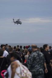 Keywords: 161001-N-AY374-170 161001-N-AY374-170.jpg en 161001-N-AY374-170 ATLANTIC OCEAN Oct 1 2016 Spectators attending the aircraft carrier USS George Washington CVN 73 friends and family day look on during an air demonstration George Washington is homeported in Norfolk after serving seven years in Yokosuka Japan as the U S Navy's only forward-deployed aircraft carrier U S Navy photo by Petty Officer 3rd Class Jacob Goff Unit Navy Media Content Services DVIDS Tags CVN 73; Friends and Family day; NMCS; USS George Washington; DVIDS Bulk Import 2016-10-01 Petty Officer 3rd Class Jacob Goff https //www dvidshub net/image/2895641/161001-n-ay374-170 161001-N-AY374-170 2016-10-04 00 20 PD-USGov-Military-Navy USS George Washington CVN-73 Images from DoD uploaded by Fæ |