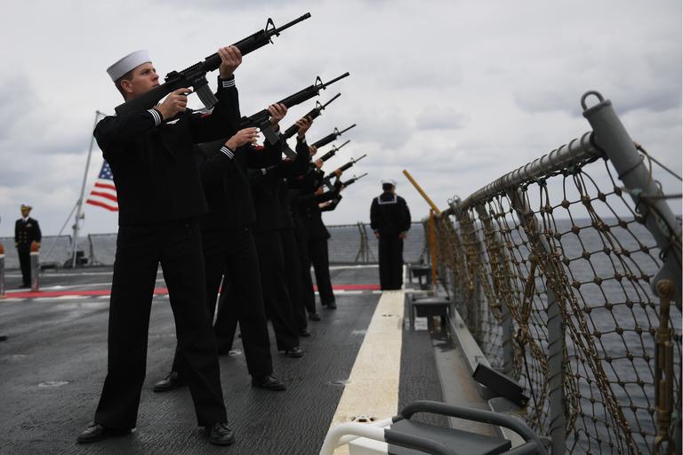 Keywords: winner alt outdoor 161016-N-JI086-049 - BLACK SEA (Oct. 16, 2016) Petty Officer 3rd Shane Stevens and the U.S. 6th Fleet command and control ship USS Mount Whitney (LCC 20) firing squad perform a 21-gun salute during a burial-at-sea ceremony, Oct. 16, 2016. Mount Whitney is underway conducting naval operations in the U.S. 6th Fleet area of operations to engage with key allies and partners in the region. (U.S. Navy photo by Seaman Ford Williams/Released) 161016-N-JI086-049 - BLACK SEA (Oct. 16, 2016) Petty Officer 3rd Shane Stevens and the U.S. 6th Fleet command and control ship USS Mount Whitney (LCC 20) firing squad perform a 21-gun salute during a burial-at-sea ceremony, Oct. 16, 2016. Mount Whitney is underway conducting naval operations in the U.S. 6th Fleet area of operations to engage with key allies and partners in the region. (U.S. Navy photo by Seaman Ford Williams/Released) |
