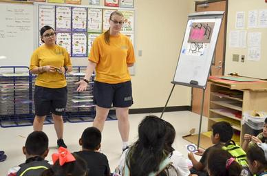 Keywords: 161018-N-IR859-347 161018-N-IR859-347.jpg en 161018-N-IR859-347 HOUSTON Oct 18 2016 Petty Officer 1st Class Cynthia Martens right and Seaman Jade Alvarado from USS George H W Bush CVN 77 talk to children about Navy life at the Housman Boys and Girls Club in Houston Texas during Navy Week Navy Weeks coordinated by the Navy Office of Community Outreach NAVCO are designed to give Americans the opportunity to learn about the Navy its people and its importance to national security and prosperity U S Navy photo by Chief Jen Blake/Released <br>Unit Navy Media Content Services 2016-10-18 Jennifer Blake https //www dvidshub net/image/2944677/161018-n-ir859-347 161018-N-IR859-347 2016-10-26 00 49 PD-USGov-Military-Navy USS George H W Bush CVN-77 Images from DoD uploaded by Fæ |