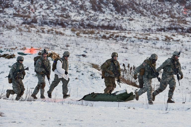 | Keywords: paratroopers; training; alaska; jber; joint base elmendorf-richa paratrooperstrainingalaskajberjointbaseelmendorfricha joint base elmendorf-richardson jointbaseelmendorfrichardson alaska usa paratroopers; training; alaska; jber; joint base elmendorf-richardson; live fire; u.s. army alaska; norcom; northern command; airborne paratrooperstrainingalaskajberjointbaseelmendorfrichardsonlivefireusarmyalaskanorcomnortherncommandairborne outdoor bird animal Paratroopers assigned to Baker Company, 3rd Battalion, 509th Parachute Infantry Regiment, 4th Infantry Brigade Combat Team (Airborne), 25th Infantry Division, U.S. Army Alaska, evacuate a simulated casualty during live-fire and movement-to-contact operations on the Infantry Squad Battle Course at Joint Base Elmendorf-Richardson, Alaska, Nov. 8, 2016. The soldiers focused on core infantry skills such as fire team movement, communication, shifting fire, and once on the objective identifying and eliminating weapons caches and treating and evacuating casualties. (U.S. Air Force photo/Justin Connaher) Paratroopers assigned to Baker Company, 3rd Battalion, 509th Parachute Infantry Regiment, 4th Infantry Brigade Combat Team (Airborne), 25th Infantry Division, U.S. Army Alaska, evacuate a simulated casualty during live-fire and movement-to-contact operations on the Infantry Squad Battle Course at Joint Base Elmendorf-Richardson, Alaska, Nov. 8, 2016. The soldiers focused on core infantry skills such as fire team movement, communication, shifting fire, and once on the objective identifying and eliminating weapons caches and treating and evacuating casualties. (U.S. Air Force photo/Justin Connaher) |