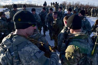 | Keywords: paratroopers; training; alaska; jber; joint base elmendorf-richa paratrooperstrainingalaskajberjointbaseelmendorfricha joint base elmendorf-richardson jointbaseelmendorfrichardson alaska usa paratroopers; training; alaska; jber; joint base elmendorf-richardson; live fire; u.s. army alaska; norcom; northern command; airborne paratrooperstrainingalaskajberjointbaseelmendorfrichardsonlivefireusarmyalaskanorcomnortherncommandairborne outdoor people Paratroopers assigned to Baker Company, 3rd Battalion, 509th Parachute Infantry Regiment, 4th Infantry Brigade Combat Team (Airborne), 25th Infantry Division, U.S. Army Alaska, gather for an after-action briefing after conducting live-fire and movement-to-contact operations on the Infantry Squad Battle Course at Joint Base Elmendorf-Richardson, Alaska, Nov. 8, 2016. The soldiers focused on core infantry skills such as fire team movement, communication, shifting fire, and once on the objective identifying and eliminating weapons caches and treating and evacuating casualties. (U.S. Air Force photo/Justin Connaher) Paratroopers assigned to Baker Company, 3rd Battalion, 509th Parachute Infantry Regiment, 4th Infantry Brigade Combat Team (Airborne), 25th Infantry Division, U.S. Army Alaska, gather for an after-action briefing after conducting live-fire and movement-to-contact operations on the Infantry Squad Battle Course at Joint Base Elmendorf-Richardson, Alaska, Nov. 8, 2016. The soldiers focused on core infantry skills such as fire team movement, communication, shifting fire, and once on the objective identifying and eliminating weapons caches and treating and evacuating casualties. (U.S. Air Force photo/Justin Connaher) |