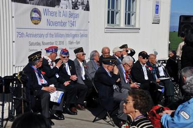 Keywords: u.s. army usarmy nisei san francisco sanfrancisco japanese linguist history culture japanese-americans japaneseamericans people Col. Phil Deppert, commandant of the Defense Language Institute Foreign Language Center, and the National Japanese American Historical Society paid tribute to World War II Nisei veterans on their 75th anniversary of the Military Intelligence Service at Crissy Field in San Francisco Nov. 12. The Military Intelligence Service Historic Learning Center is located inside the abandoned airplane hangar where a small group of officers started a small school to teach the Japanese language at the Presidio of San Francisco in November 1941. That school would grow over time to become the Defense Language Institute Foreign Language Center. (U.S. Army photo by Patrick Bray/Released) Col. Phil Deppert, commandant of the Defense Language Institute Foreign Language Center, and the National Japanese American Historical Society paid tribute to World War II Nisei veterans on their 75th anniversary of the Military Intelligence Service at Crissy Field in San Francisco Nov. 12. The Military Intelligence Service Historic Learning Center is located inside the abandoned airplane hangar where a small group of officers started a small school to teach the Japanese language at the Presidio of San Francisco in November 1941. That school would grow over time to become the Defense Language Institute Foreign Language Center. (U.S. Army photo by Patrick Bray/Released)