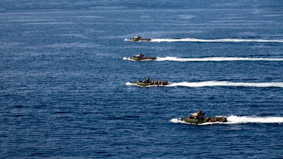 | Keywords: usnavcent alligator dagger alligatordagger ctf 51/5 ctf515 makin island arg makinislandarg amphibious ready group amphibiousreadygroup 11th meu 11thmeu 11th marine expeditionary unit 11thmarineexpeditionaryunit u.s. marine corps usmarinecorps u.s. navy usnavy naval amphibious forces navalamphibiousforces battalion landing team 1st battalion 4th marines battalionlandingteam1stbattalion4thmarines blt 1/4 blt14 ground combat element groundcombatelement combat logistics battalion 11 combatlogisticsbattalion11 clb-11 clb11 logistics combat element logisticscombatelement marine medium tiltrotor squadron 163 (reinforced) marinemediumtiltrotorsquadron163reinforced vmm-163 vmm163 aviation combat element aviationcombatelement maritime raid force maritimeraidforce mrf uss somerset usssomerset lpd-25 lpd25 amphibious transport dock ship amphibioustransportdockship uss comstock usscomstock lsd-45 lsd45 dock landing ship docklandingship uss makin island ussmakinisland lhd-8 lhd8 amphibious assault ship amphibiousassaultship lcac landing craft air cushion landingcraftaircushion magtf marine air-ground task force. marineairgroundtaskforce u.s. 5th fleet area of responsibility us5thfleetareaofresponsibility usa outdoor vehicle boat waterfront water sea U.S. 5TH FLEET AREA OF OPERATIONS (Dec. 6, 2016) Amphibious assault vehicles with the 11th Marine Expeditionary Unit move in formation through the Gulf of Aden during an amphibious assault rehearsal as part of Exercise Alligator Dagger, Dec. 6, 2016. The Makin Island Amphibious Ready Group (ARG) and 11th Marine Expeditionary Unit (MEU) will conduct amphibious operations and combat sustainment training. The ARG/MEU Navy-Marine Corps team is operating in the U.S. 5th Fleet area of responsibility in support of maritime security operations, crisis response, and theater security cooperation efforts to ensure the free flow of commerce, freedom of navigation and regional security. (U.S. Marine Corps photo by Cpl. Devan K. Gowans) U.S. 5TH FLEET AREA OF OPERATIONS (Dec. 6, 2016) Amphibious assault vehicles with the 11th Marine Expeditionary Unit move in formation through the Gulf of Aden during an amphibious assault rehearsal as part of Exercise Alligator Dagger, Dec. 6, 2016. The Makin Island Amphibious Ready Group (ARG) and 11th Marine Expeditionary Unit (MEU) will conduct amphibious operations and combat sustainment training. The ARG/MEU Navy-Marine Corps team is operating in the U.S. 5th Fleet area of responsibility in support of maritime security operations, crisis response, and theater security cooperation efforts to ensure the free flow of commerce, freedom of navigation and regional security. (U.S. Marine Corps photo by Cpl. Devan K. Gowans) |