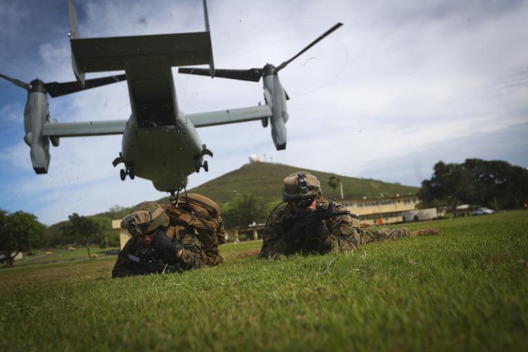 | Keywords: marine corps base hawaii marinecorpsbasehawaii hawaii united states unitedstates us outdoor Marines with Alpha Company, 1st Battalion, 3rd Marine Regiment, provide security during a simulation of Operation Gotchic Serpent at landing zone 216, aboard MCB Hawaii, Dec. 10, 2016. Operation Gothic Serpent was a military operation conducted by U.S. special operations forces with the primary mission of capturing faction leader Mohamed Farrah Aidid. The operation occured in Somalia, Africa, from August to October 1993 and was supervised by the Joint Special Operations Command. (U.S. Marine Corps photo by Cpl. Aaron S. Patterson/Released) www.dvidshub.net Marines with Alpha Company, 1st Battalion, 3rd Marine Regiment, provide security during a simulation of Operation Gotchic Serpent at landing zone 216, aboard MCB Hawaii, Dec. 10, 2016. Operation Gothic Serpent was a military operation conducted by U.S. special operations forces with the primary mission of capturing faction leader Mohamed Farrah Aidid. The operation occured in Somalia, Africa, from August to October 1993 and was supervised by the Joint Special Operations Command. (U.S. Marine Corps photo by Cpl. Aaron S. Patterson/Released) www.dvidshub.net |