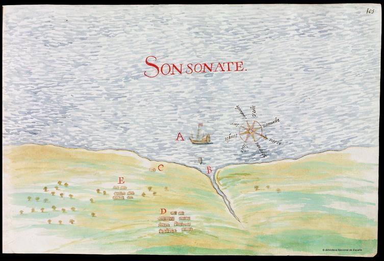 Keywords: 1632 Cardona Descripcion Indias (105).jpg es Página 105 de las Descripciones geográphicas e hydrográphicas de muchas tierras y mares del Norte y Sur en las Indias en especial del descubrimiento del Reino de la California redactadas por el capitán Nicolás de Cardona tras su expedición de 1614 El documento original es descrito en la página anterior de la siguiente manera A La fragata del descubrimiento B La boca del Río C La cassa Real D Villa de Sonsonate E El Pueblo de ¿ San Franco s of many northern and southern lands and seas in the Indies specifically the discovery of the kingdom of California written by captain Nicolás de Cardona after his expedition of 1614 other versions Descripciones geográficas e hidrográficas de muchas tierras y mares del Norte y Sur en las Indias en especial del descubrimiento del Reino de California hecho con trabajo e industria por el capitán y cabo Nicolás de Cardona dirigidas al Exmo D Gaspar de Guzmán Conde de Olivares http //bdh bne es/bnesearch/detalle/bdh0000011007 Biblioteca Digital Hispánica Biblioteca Nacional de España PD-Art PD-old-100 ca 1632 Spain watermark Descripciones geográphicas e hydrográphicas de muchas tierras y mares del Norte y Sur en las Indias en especial del descubrimiento del Reino de la California Maps by Nicolás de Cardona Watercolor maps Maps in Spanish Pictorial maps 1632 maps Old manuscript maps Sonsonate El Salvador Old maps of El Salvador |