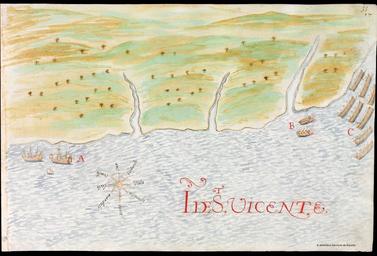 Keywords: 1632 Cardona Descripcion Indias (33).jpg es Isla de San Vicente Piraguas caribes C atacan por sorpresa a dos barcas españolas B con las que habían acordado comerciar Página 33 de las Descripciones geográphicas e hydrográphicas de muchas tierras y mares del Norte y Sur en las Indias en especial del descubrimiento del Reino de la California redactadas por el capitán Nicolás de Cardona tras su expedición de 1614 s of many northern and southern lands and seas in the Indies specifically the discovery of the kingdom of California written by captain Nicolás de Cardona after his expedition of 1614 1632-06-24 Descripciones geográficas e hidrográficas de muchas tierras y mares del Norte y Sur en las Indias en especial del descubrimiento del Reino de California hecho con trabajo e industria por el capitán y cabo Nicolás de Cardona dirigidas al Exmo D Gaspar de Guzmán Conde de Olivares http //bdh bne es/bnesearch/detalle/bdh0000011007 Biblioteca Digital Hispánica Biblioteca Nacional de España Nicolás de Cardona other versions PD-Art PD-old-100 ca 1632 Spain watermark Descripciones geográphicas e hydrográphicas de muchas tierras y mares del Norte y Sur en las Indias en especial del descubrimiento del Reino de la California Maps by Nicolás de Cardona Watercolor maps Maps in Spanish Pictorial maps 1632 maps Old manuscript maps History of Saint Vincent and the Grenadines Maps of battles of Spain |