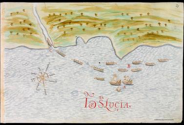 Keywords: 1632 Cardona Descripcion Indias (29).jpg es Escena de la isla caribeña de Santa Lucía Página 29 de las Descripciones geográphicas e hydrográphicas de muchas tierras y mares del Norte y Sur en las Indias en especial del descubrimiento del Reino de la California redactadas por el capitán Nicolás de Cardona tras su expedición de 1614 s of many northern and southern lands and seas in the Indies specifically the discovery of the kingdom of California written by captain Nicolás de Cardona after his expedition of 1614 1632-06-24 Descripciones geográficas e hidrográficas de muchas tierras y mares del Norte y Sur en las Indias en especial del descubrimiento del Reino de California hecho con trabajo e industria por el capitán y cabo Nicolás de Cardona dirigidas al Exmo D Gaspar de Guzmán Conde de Olivares http //bdh bne es/bnesearch/detalle/bdh0000011007 Biblioteca Digital Hispánica Biblioteca Nacional de España Nicolás de Cardona other versions PD-Art PD-old-100 ca 1632 Spain watermark Descripciones geográphicas e hydrográphicas de muchas tierras y mares del Norte y Sur en las Indias en especial del descubrimiento del Reino de la California Maps by Nicolás de Cardona Watercolor maps Maps in Spanish Pictorial maps 1632 maps Old manuscript maps Old maps of Saint Lucia |