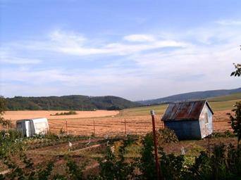 Keywords: 16.8.2004 komín 247.jpg cs Pohled na komínské Medlánecké letiště od muničního skladu O pozemky pod letištěm o neplacení za jejich pronájem se táhnou již dlouhodobé spory které vrcholí požadavkem letiště zrušit own I Sáček senior Brno-Komín