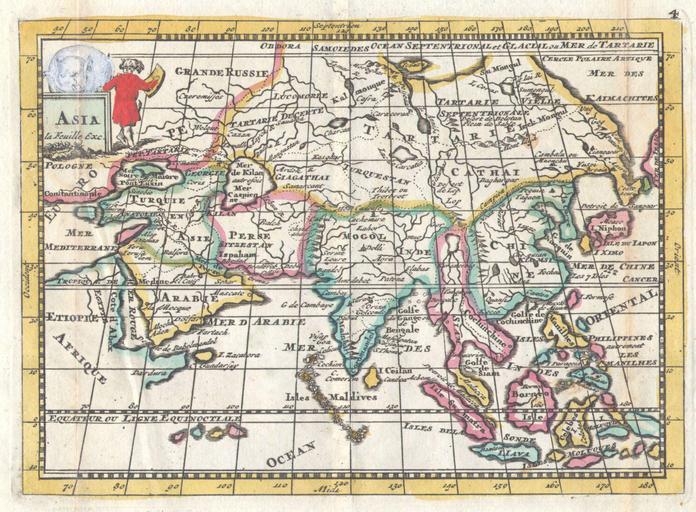 | Keywords: 1706 de la Feuille Map of Asia - Geographicus - Asia-lafeuille-1706.jpg  A very scarce c 1706 map of Asia issued by Daniel de La Feuille Extends from the Mediterranean to Alaska and as far south as Java Depicts the Mogol Empire in India the kingdoms of Siam and Chochine China Arabia and Tartary In China the Great wall is shown The Caspian Sea is wildly distorted as is the Arabian Peninsula and Japan North of Japan Hokkaido is shown attached to the mainland In central Asia Tibet is labeled as are the Lop Nor salt flats in China The Crimean peninsula is drawn as an island In southeast Asia a curious lake is drawn in what is today the Golden Triangle The map suggests this body of water as a source for the Irrawaddi Burma Mekong Vietnam and Chao Phraya Thailand river systems The allegorical title cartouche in the upper left quadrant features an elephant and what appears to be a young girl with a shield This map was originally prepared for inclusion as chart no 4 in the 1706 edition of De la Feuille's Les Tablettes Guerrières ou Cartes choisies Pour la Commodité des Officiers et des Voyageurs Contenant toutes les Cartes générales Du Monde avec les particuliers des Lieux ou le Théatre de la Guerre se fait sentir en Europe 1706 Size in 7 5 5 5 object history credit line accession number Asia-lafeuille-1706 Geographicus-source PD-old-100 Old maps of Asia 1706 maps Asia Lop Nur Maps in French Asia Daniel de La Feuille Asia |