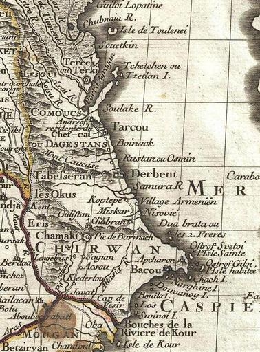 | Keywords: 1724 De L'Isle Map of Persia (Iran, Iraq, Afghanistan) - Geographicus - Persia-delisle-1724. G.jpg  Artwork User Multichill/Geographicus/cartographers delisle txt A fine first edition example of Guillaume De L ™Isle ™s important 1724 map of Persia Covers from the Crimea and the Sea of Azov south to the Persian Gulf and the Straight of Ormuz and east as far as Kashmir Cachmir and Kabul Caboul This map includes modern day Iran Iraq Afghanistan Kuwait Uzbekistan Turkmenistan Tajikistan Georgia Armenia and Azerbaijan with adjacent parts of Russia Pakistan Turkey Ukraine and Kazakhstan and Arabia Cartographically De L ™Isle ™s mapping of Persia marks a significant advance in European cartographic knowledge of the region This map benefits considerably from Russian cartographic surveys and other sources no doubt smuggled to Guillaume De L ™Isle by his brother Nicholas de L ™Isle who held a cartographic position with the Russian Academy of Sciences The extent to which Russian data influenced this map is nowhere more evident than in De L ™Isle ™s remarkable rendering of the Caspian Sea “ one of the first accurate maps of the great lake to follow Van Verden ™s historic survey of 1721 Russian cartographic information is also apparent with regard to place names such as the Russian name for the Aral Sea Glouchoiye It is equally likely that De L ™Isle drew on Russian sources for his mapping of the Silk Route centers of Bukhara Samarkand and Ferghana which were known stopping points for Russian trade envoys to China For the remainder of Persia De L ™Isle most likely updated Persian and Arabic cartographic information with reports from Georgian and Armenian traders and mercenaries active throughout Persia It may be through these sources that De L ™Isle was able to add considerable geographic information regarding trade routes and place names in central Persia These include such significant advances as the identification of Terheran Tiheran the current capital of Iran which is notable absent it earlier European maps of Persia This map was drawn by Guillaume De L ™Isle and engraved by P Starckman It issued independently as well as included in a number of composite atlases including De L ™Isle ™s 1731 Atlas de Geographie A number of reissues by Buache Covens Mortier and others followed 1724 undated Size in 25 20 object history credit line accession number Persia-delisle-1724 Image 1724 De L'Isle Map of Persia Iran Iraq Afghanistan - Geographicus - Persia-delisle-1724 jpg Original source De L'Isle G <i>Atlas de Geographie</i> c 1730 Geographicus-source PD-art-100 Guillaume Delisle 1724 maps Russian Academy of Sciences 18th-century maps of Azerbaijan Maps of the history of Dagestan Old maps of Shirvan Maps in French Old maps of the Caspian Sea Covens en Mortier P Starckman |