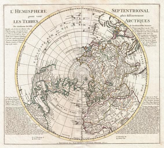 Keywords: 1741 Covens and Mortier Map of the Northern Hemisphere ( North Pole, Arctic ) - Geographicus - NorthPole-covensmortier-1741.jpg This is a stunning and important map of the Northern Hemisphere originally drawn by Guillaume de L'Isle in 1714 and updated by Coven's and Mortier in 1741 Covers from the North Pole south in all directions to include the Arctic Regions all of North American Central America Asia and Europe with parts of South America and most of Africa To either side of the map proper in French on left side and in Dutch on right side is a letter written by Monsieur Swartz a Danish explorer in the service of the Tzar regarding his c 1734 - 1740 explorations near Japan and Kamchatka Covens and Mortier's most interesting updates over the De L'Isle version of this map relate to explorations in North America and in East Asia North America is drawn as it appeared at the height of the Colonial period English colonies skirt the east coast the French control the Great Lakes regions and Louisiana and the Spanish dominate in Mexico California and the Southwest California is drawn connected to the mainland with a dotted line - indicating that European map publishers were not yet prepared to give up on the idea that California may indeed be an Island Names the city of Quivara which is one of the lands associated with Spanish legends of the Seven Cities of Gold Also notes the Sioux and the Apalache peoples As befits De L'Isle's scientific approach to cartographer much of the unexplored northwest of America remains blank By contrast the northeast parts of Asia which had recently been explored by Vitus Bering and Tschirikow offer a number of interesting elements The land of Compagnie is shown just the east of Yedso likely Hokkaido with a note regarding its mysterious discovery by Jean de Gama Often called de Gamma Land or Gama this island was supposedly discovered in the 17th century by a mysterious figure known as Jean de Gama Various subsequent navigators claim to have seen this land but it was left to Bering to finally debunk the myth In 1729 he sailed for three days looking for Juan de Gama land but never found it Thought it may be little more than a mis-mapping of Hokkaido or the Japanese Kuriles Gama or Compagnie remained on maps for about 50 years following Bering's voyages until the explorations of Cook confirmed the Bering findings Japan itself is only vaguely mapped though Edo Yendo is indicated Just to the west the Peninsula of Korea is drawn with a fairly accurate if slightly bulbous form Further south Formosa and the Philippines are well mapped Published by Covens and Mortier in their c 1741 reissue of Guillaume de L'Isle's Atlas Nouveau circa 1741 dated 1739 Size in 21 19 object history credit line accession number NorthPole-covensmortier-1741 Covens J Mortier C <i>Atlas nouveau contenant toutes les parties su Monde ou sont exactement remarquees les empires monarchies royaumes etats republiques c Par Guillaume de l'Isle</i> c 1841 editon Geographicus-source PD-Art-100 Old maps of the Arctic Old maps of Earth's hemispheres Maps in French Maps in Dutch Covens en Mortier 1741 maps Hemispheres centered North pole |