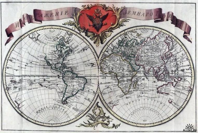 | Keywords: Картаполушарий (1745).jpg ru Ка та ми а из пе вого официального геог афического атласа Российской импе ии en First official geographic atlas of the Russian Empire 1745 World map Атлас Российский РА 1745 PD-old-100 Atlas of Russian Empire 1745 year Old maps of the world |