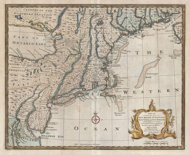 | Keywords: 1747 Bowen Map of New Jersey, Pennsylvania, New York and New England - Geographicus - NewYorkNewEngland-bowen-1747.jpg A scarce and remarkable 1749 map of the New Jersey New York Pennsylvania Maine New Hampshire and Connecticut by Emmanuel Bowen Covering from the Chesapeake Bay to Lake Champlain and from Lake Ontario to Nova Scotia this remarkable map is an excellent example of both the success and failures of 18th century English mapping in the American colonies It also makes evident the challenges of the European map publisher in piecing together numerous disparate reports and mappings into a single cohesive cartographic entity In this example the contrast is most strikingly elucidated in Bowen's relatively accurate mapping of the coast lines in contrast to the extraordinary vagueness of the interior A simple overlay with a modern map reveals that while Bowen's longitudinal cartography along the coastline is slightly off from Cape Cod westward his latitudinal reference points are dead on Heading inland from the Atlantic this precision quickly evaporates Lake Ontario is proportionally massive and situated several hundred miles too far east Despite Bowen's considerable errors in proportion and positioning the Lake Ontario shoreline is surprisingly accurate in form and detailed down to the Finger Lakes extending south from the main body Politically Bowen offers some interesting detail regarding the early boundary lines of the colonies New Jersey in divided into the provinces of East and West Jersey The Pennsylvania is defined as the undeveloped lands to the west of the Susquehanna River The lands to the East of the Susquehanna River as far as the Delaware River are assigned to the Philadelphia Company The inland borders between the Massachusetts Bay Colony Connecticut and New York are indistinct Canada extends south to the Pennsylvania border Bowen identifies the important Cod fishing Shoals off New Hampshire Cape Cod and Nantucket He also adds number of notations regarding the events that occurred near around 1746 Albany New York during King Georges War third of the four French and Indian Wars Published for inclusion as plate no 62 in Bowen's 1747 edition of A Complete System of Geography 1747 undated Size in 17 14 object history credit line accession number of all the countries islands cities chief towns harbours lakes and rivers mountains mines c of the known world ¦</i> 1747 edition Geographicus-source PD-Art-100 Maps in English Old maps of New Jersey Old maps of New York Old maps of New Hampshire Old maps of Connecticut Maps by Emanuel Bowen 1747 maps |
