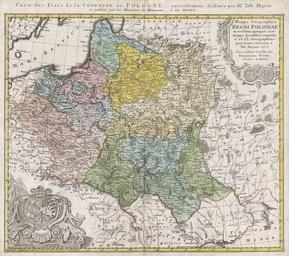 | Keywords: 1750 Homann Heirs Map of Poland - Geographicus - Poloniae-homannheirs-1750.jpg This is one of the Homann Heirs finest and most appealing maps of Poland Depicts the Poland extending north as far as Latvia Lithuania and the Lithuanian Sea and south as far as the Carpathian Mountains Moldova and Transylvania Features two elaborate decorative cartouches one in the upper right quadrant decorated with a Polish coin and another in the lower left quadrant bearing the Polish armorial emblems Additional French title outside top border Carte des Etats de la Couronne de Pologne nouvellement dessinee par Mr Tob Mayer This map was drawn by Tob Mayer for inclusion the 1752 Homann Heirs Maior Atlas Scholasticus ex Triginta Sex Generalibus et Specialibus ¦ Most early Homann atlases were made to order or compiled of individual maps at the request of the buyer However this rare atlas composed of 37 maps and charts was issued as a suggested collection of essential Homann Heirs maps A fine copy of an important map 1750 Size in 21 18 object history credit line accession number Poloniae-homannheirs-1750 Geographicus-source PD-Art-100 Maps by Homannsche Erben Old maps of Poland 1750 maps |