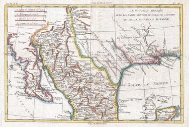 | Keywords: 1780 Raynal and Bonne Map of Mexico and Texas - Geographicus - NouveauMexique-bonne-1780.jpg This is a beautiful c 1780 Bonne map of northern Mexico and Texas Covers from the Pacific Ocean through Mexico Texas and Louisiana to western Florida extends north as far as the Mission of St Jeronimo de Taos just north of Santa Fe and south as far as Guadalajara and the northern Yucatan More specifically this map includes the modern day regions of Baja California northern Mexico and the states of Arizona New Mexico Texas and Louisiana Depicts the region in considerable detail expecially in regard to place names Indian villages missions and riverways In the Texas region there appears a city of Texas presumably the old Mission de Los Tejas from which name Texas is derived Just to the east of this city there is a notation regarding the 1665 death of the explorer La Salle In present-day Arizona the Gila River is referenced as the Rio de los Apostolos This map is heavily based on the work of D ™Anville and was issued for G Raynal ™s Atlas de Toutes les Parties Connues du Globe Terrestre DressĂ© pour l'Histoire Philosophique et Politique des Établissemens et du Commerce des EuropĂ©ens dans les Deux Indes 1780 undated Size in 13 9 object history credit line accession number NouveauMexique-bonne-1780 Raynal G <i>Atlas de Toutes les Parties Connues du Globe Terrestre DressĂ© pour l'Histoire Philosophique et Politique des Établissemens et du Commerce des EuropĂ©ens dans les Deux Indes</i> 1780 Geographicus-source PD-old-100 Old maps of Mexico Old maps of the United States Maps of the history of Mexico Mexico in the 18th century Maps of Baja California Old maps of Louisiana Old maps of Texas History of Baja California 1780 maps Maps by Rigobert Bonne |