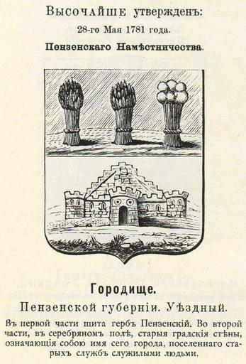 | Keywords: Городище 1781 из Винклера.jpg Official Russian Empire coat of arms Gorodishze Гласный ге б Российской Импе ии уездного го ода Го одище Пензенской губе нии с официальным описанием в Ге бовнике Винкле а П П фон-Винкле Ге бы го одов губе ний областей и посадов Российской Импе ии внесенные в Полное Соб ание законов с 1649 по 1900 год Дозволено цензу ою С -Пете бу г 20 Июля 1899 года Издание книгото говца Ив Ив Иванова С -Пете бу г Типог афия И Комелова П яжка д 3 1899 \ Scanned 1781 \ 1899 published П П фон Винкле \ Pavel von Vinkler PD-old PD-RusEmpire PD-RU-exempt coats of arms Gerbovnik Vinklera - City CoAs Coats of arms of Penza Governorate Russian canting arms Towns in heraldry |
