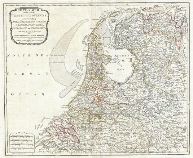 | Keywords: 1794 Laurie and Whittle Map of Holland or The Netherlands - Geographicus - Holland-lauriewhittle-1794.jpg  An extraordinary 1794 map of Holland or the Netherlands by Laurie and Whittle Covers from Zeeland eastward as far as the Circle of Westphalia north to the mouth of the Ems River and south as far as the Bishopric of Liege Includes the modern day nation of the Netherlands as well as adjacent parts of Germany and Belgium Renders the entire region in extraordinary detail offering both topographical and political information Undersea shoals canals swamps and lakes are beautiful rendered in fine engraving Color coded according to region A key and title cartouche appear in the upper left quadrant Published by Laurie Whittle for Kitchin's 1794 General Atlas 1794 dated Size in 23 19 object history credit line accession number Holland-lauriewhittle-1794 Kitchin Thomas <i>Kitchin's General Atlas describing the Whole Universe being a complete collection of the most approved maps extant; corrected with the greatest care and augmented from the last edition of D'Anville and Robert with many improvements by other eminent geographers engraved on Sixty-Two plates comprising Thirty Seven maps </i> Laurie Whittle London 1797 Geographicus-source PD-Art-100 Old maps of the Netherlands 1794 maps English language maps of Europe |